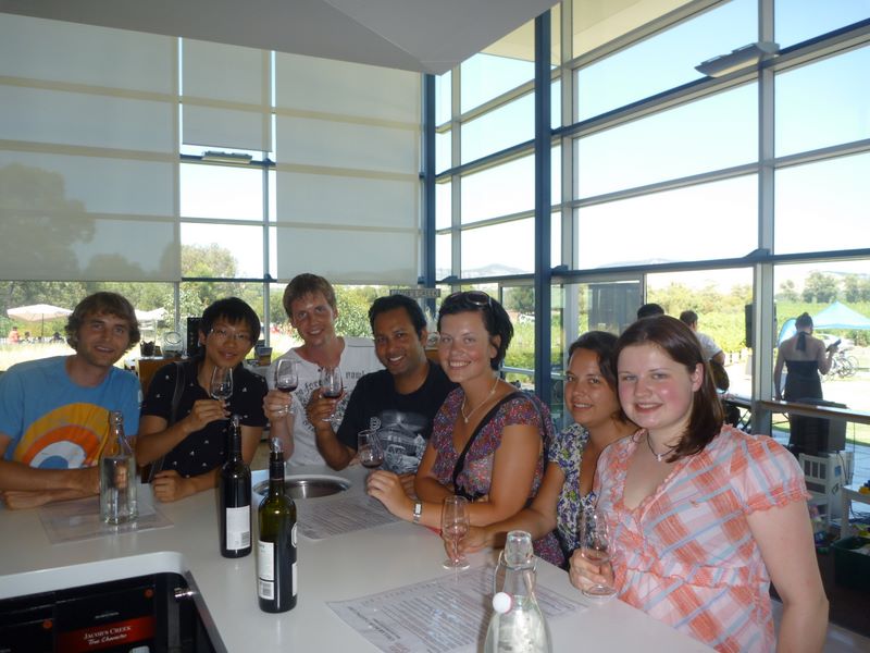 Vorige week besloten Benoît, Daniel, Cynthia, Hanna en ik om dat weekend te gaan kamperen in de Barossa Valley, een wijnregio waar ik al eerder was geweest met mijn huisgenoten. Daniel had er een facebook-event van gemaakt en zo kwam het dat we uiteindelijk met 10 mensen gingen kamperen. Zaterdag ochtend vertrokken we met drie auto's richting het noorden en om 12 uur zaten we al bij de eerste wijnproeverij. Deze groep was iets enthousiaster met wijnproeven en zodoende hebben we 5 wijnproeverijen bezocht. Aan het eind van de dag kon je dat ook wel voelen